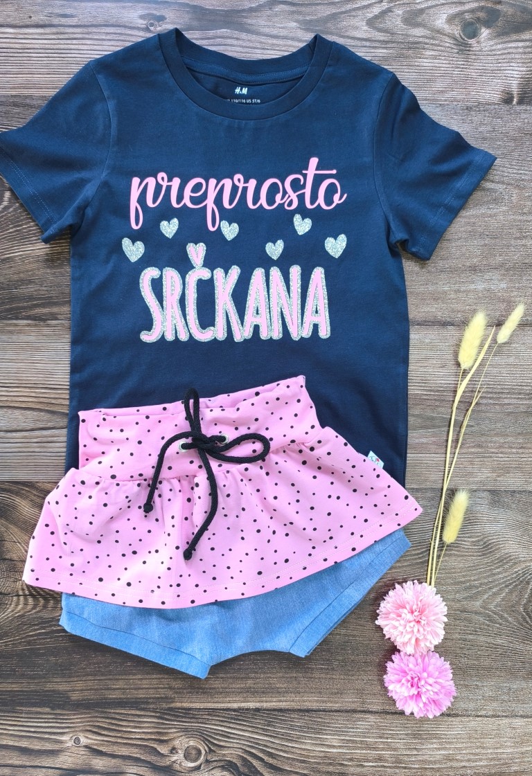 Kratke hlačke s krilom (z regulacijo v pasu) in majica.