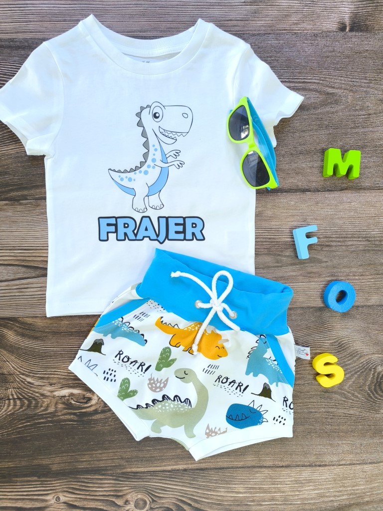 Kompletek vsebuje hlačke z regulacijo v pasu ter majčko.